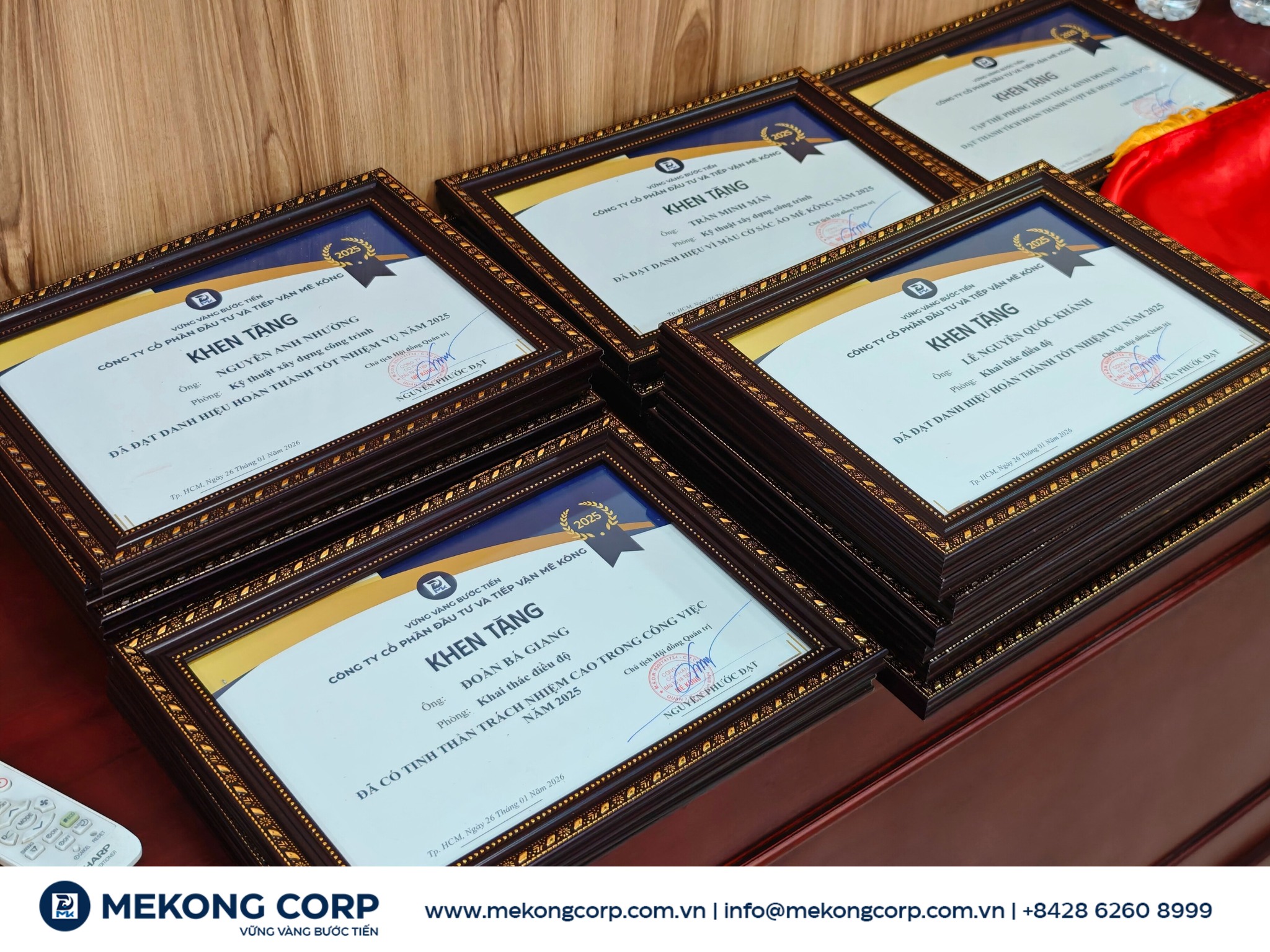 Trong khuôn khổ chương trình, Hội đồng Quản trị Mekong Corp đã vinh danh và khen thưởng các cá nhân, tập thể có thành tích tiêu biểu trong năm 2025. Đây không chỉ là sự ghi nhận xứng đáng cho những nỗ lực, cống hiến không ngừng nghỉ, mà còn là nguồn động viên tinh thần để toàn thể cán bộ nhân viên tiếp tục đồng hành cùng Công ty trên chặng đường phát triển phía trước.